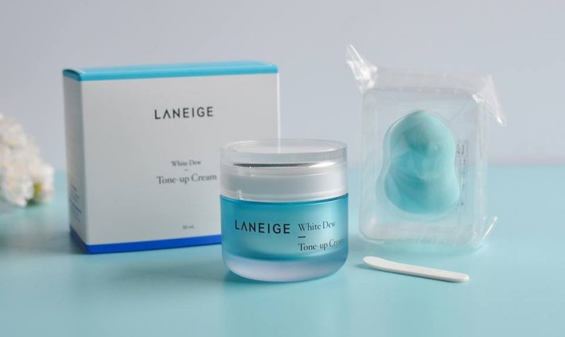 Kem dưỡng Laneige White Dew Tone-Up: Chiết xuất từ lá trà xanh, nấm men và vitamin B3, giúp thẩm thấu nhanh, không gây bết dính. Giá tham khảo: 849.000₫