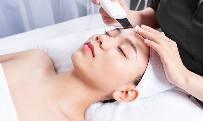Bước 2 (Rửa mặt và tẩy đi tế bào chết): Kế đến, các kỹ thuật viên spa sẽ loại bỏ cặn bã, dầu thừa và tế bào chết để làm sạch da. Điều này giúp da hấp thụ dưỡng chất dễ dàng hơn.