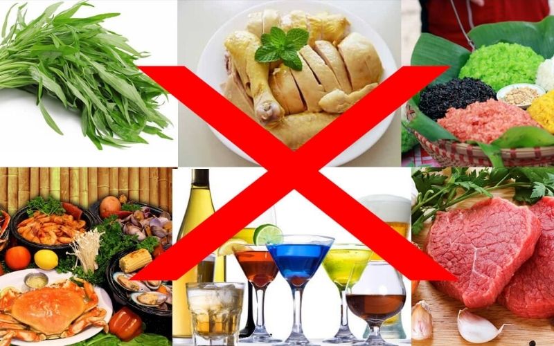 - Hạn chế thực phẩm có thể gây ngứa và dị ứng như thịt bò, thịt gà, rau muống, hải sản.