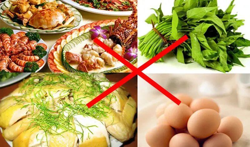 - Chế độ ăn uống: Tránh thực phẩm gây sẹo lồi, lõm như thịt gà, thịt bò, rau muống, hải sản,...