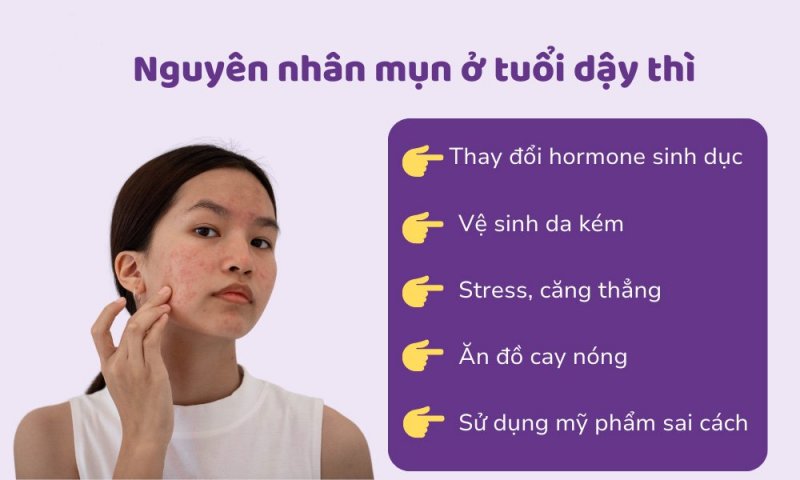 Các nguyên nhân gây mụn trứng cá thường gặp ở tuổi dậy thì: